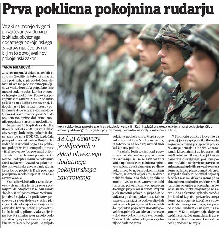 Kapitalska družba d.d. nezakonito omejuje izplačevanje privarčevanih sredstev pripadnikom Slovenske vojske, ki so opravljali vojaško službo najmanj 10 let. Neizplačevanje se izvaja z umetno oviro, pogojevanjem izplačila s prekinitvijo delovnega razmerja, čeprav tega zakonodajalec (Državni zbor) v zakonu (ZPIZ-2) ni predvidel. SVS bo storil vse za spoštovanje zakonskih določil o posebni ureditvi (5. odstavek 206. člena ZPIZ-2) izplačila privarčevanega v enkratnem znesku za pripadnike Slovenske vojske.