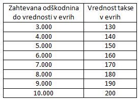 Povprečna višina zahtevka za eno misijo je približno 3.500 eur. Če je več misij se zneski seštevajo in se plača taksa po skupni vrednosti seštevka zahtevane odškodnine.