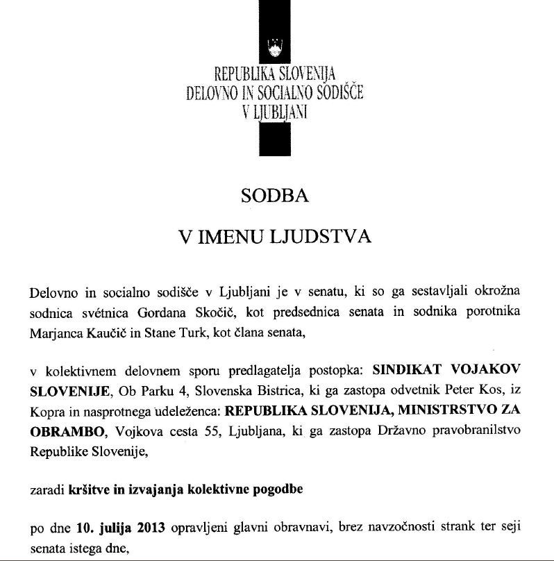 Sodba Delovnega in socialnega sodišča brez obrazložitve je objavljena na sliki spodaj, ob koncu članka.