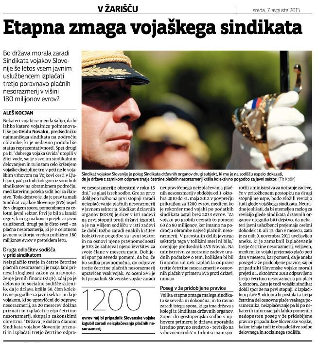 Prvi odzivi medijev: današnji Večer na 4. strani v rubriki V žarišču: Etapna zmaga vojaškega sindikata